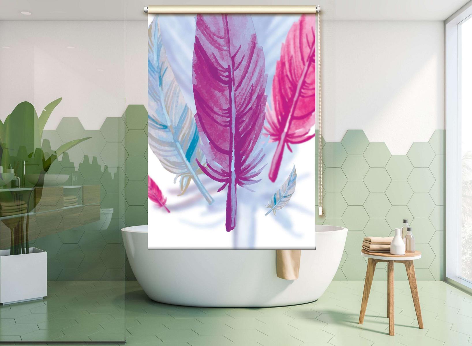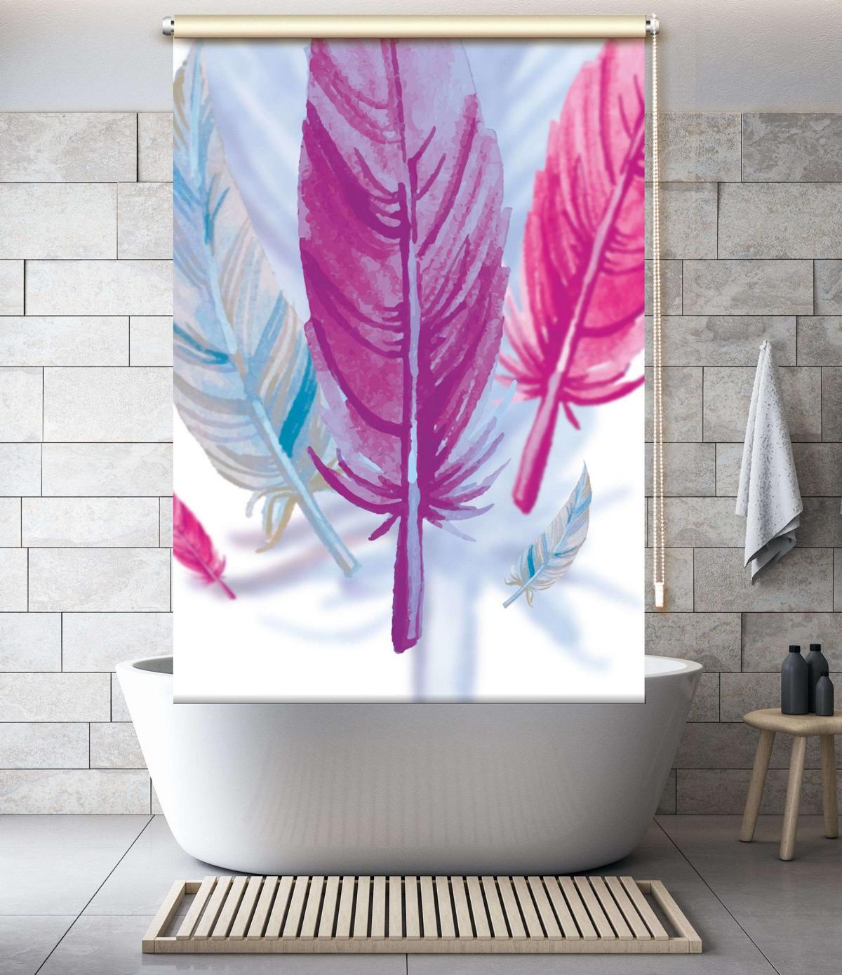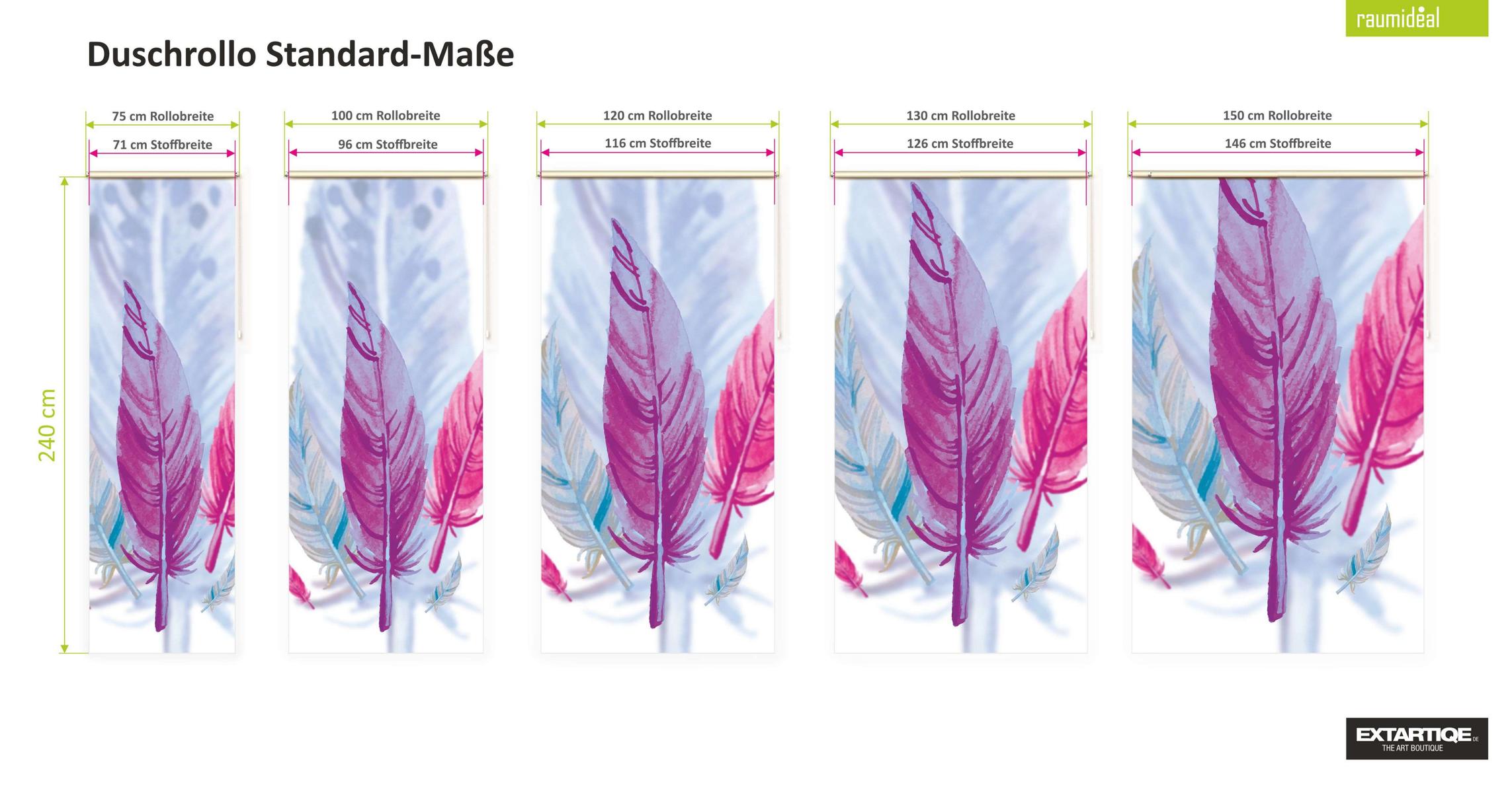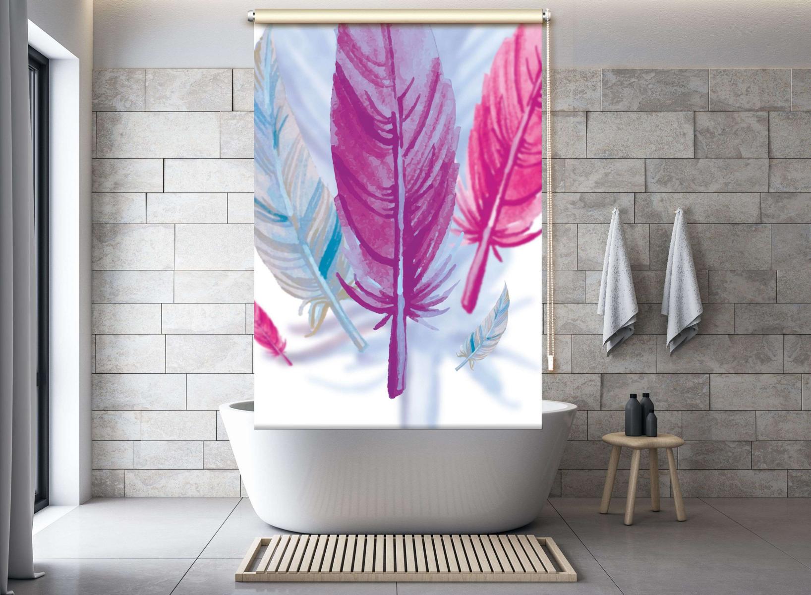 Das moderne und zeitlose Design mit dem kunstvollen Feder-Motiv verleiht deinem Duschbereich eine besondere Note. Das hochwertige Kunstmotiv sorgt für eine edle Optik und macht das Duschrollo zu einem echten Blickfang.