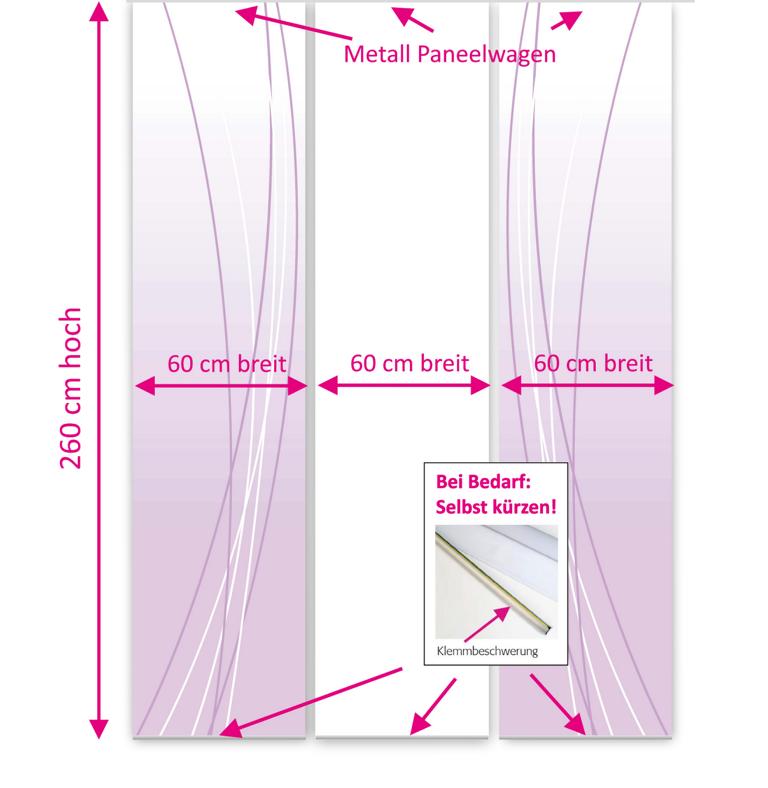 Wichtig: Der Paneelwagen - also der Gleiter für oben, an den Sie den Vorhang kletten/bzw. klemmen - ist nicht dabei!