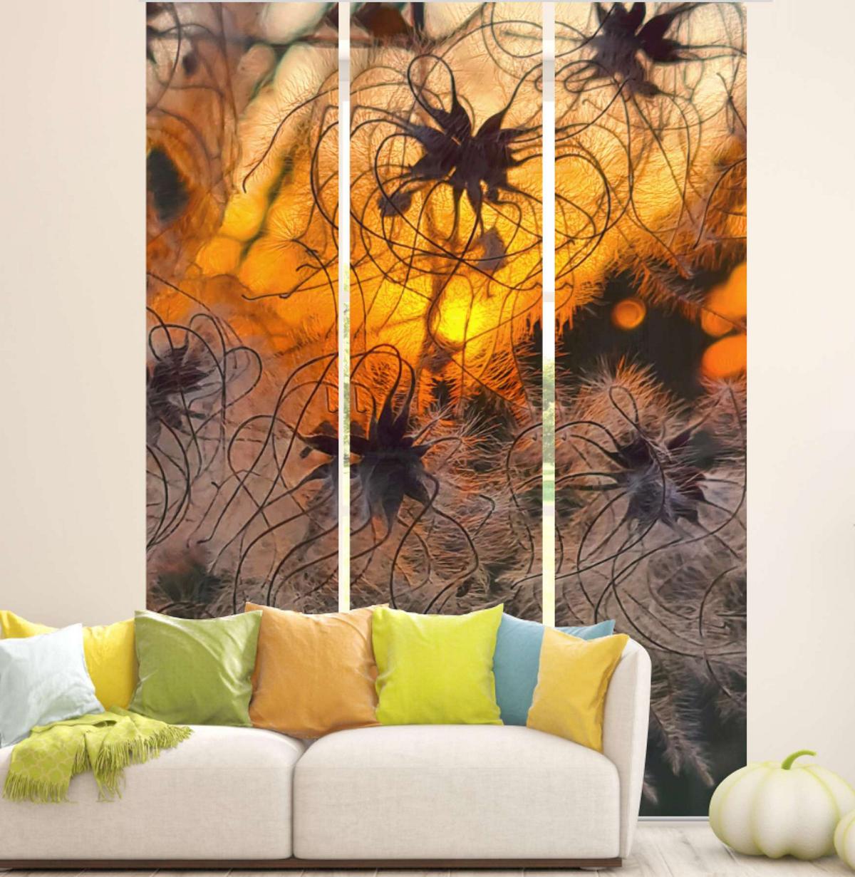 Auf jedem der drei Vorhänge sind immer 5 cm doppelt gedruckt, sodass bei geschlossenem Vorhang das komplette Motiv zu sehen ist.
