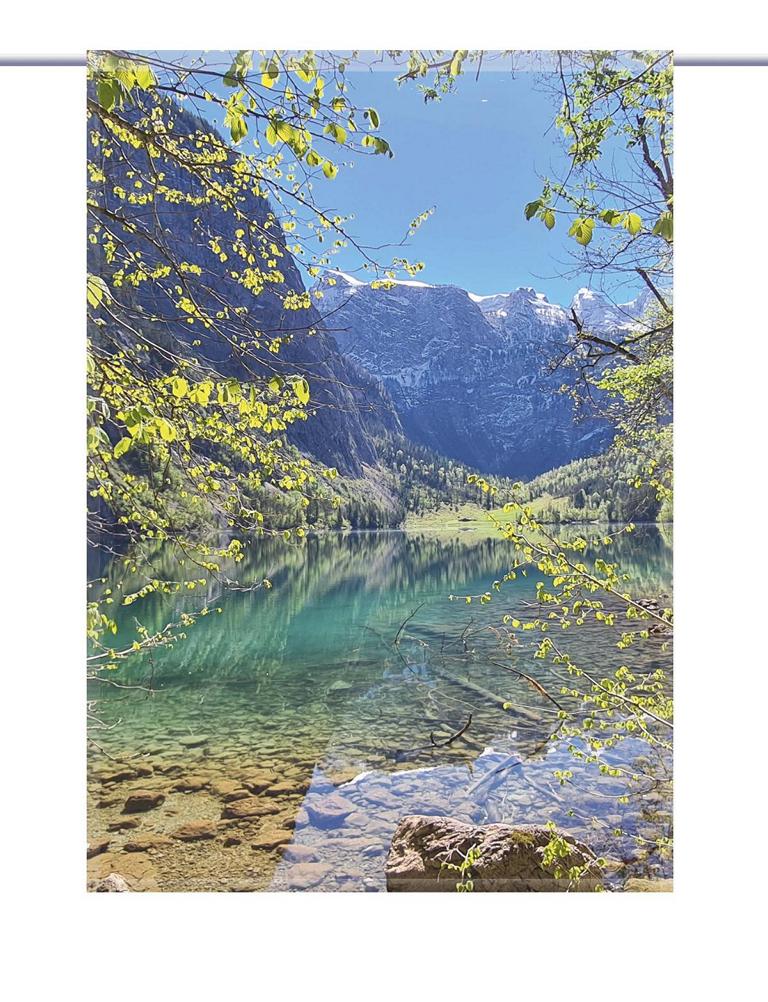 Lassen Sie sich von der Schönheit der Natur inspirieren – mit dem Scheibenhänger Bayernjuwel bringen Sie den malerischen Bergsee und atemberaubende Panoramablicke direkt in Ihr Zuhause! Diese rechteckige Gardine ist mehr als nur ein Sichtschutz; sie ist ein wahres Kunstwerk, das stilisierte Pflanzen und harmonisch gestaltete Tiere in einem modernen Design vereint.