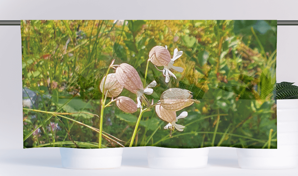 Das Gewebe der Cafehausgardine ist aus 100% Polyester, der Druck ist im Sublimationsverfahren aufgebracht.