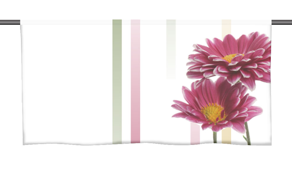 Wenn Sie Lust auf Veränderungen in Ihrer Wohnung haben, dann sind Sie mit dieser wunerschönen Cafehausgardine auf der richtigen Seite. Das tolle Blumenmotiv wird Ihren Wohnraum nachhaltig verändern. Die große Asternblüte mit ihren großen, roten Blütenblättern wird bestimmt ein Blickfang in Ihrer Wohnung werden.
