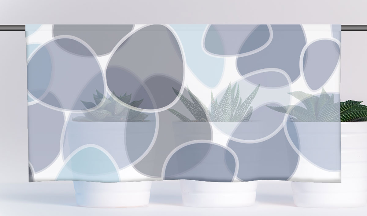 Eine neue Fensterdekoration bringt neue Farben und Motive in den Wohnraum und verändert diesen nachhaltig. Das ist gut für das Wohnklima. Deshalb sollten Sie darüber nachdenken. Diese tolle Cafehausgardine überzeugt mit ihrem abstrakten Motiv. Große Blasen in bläulicher Farbgebung bestimmen das Bild und sorgen für Bewegung in Ihren 4 Wänden.