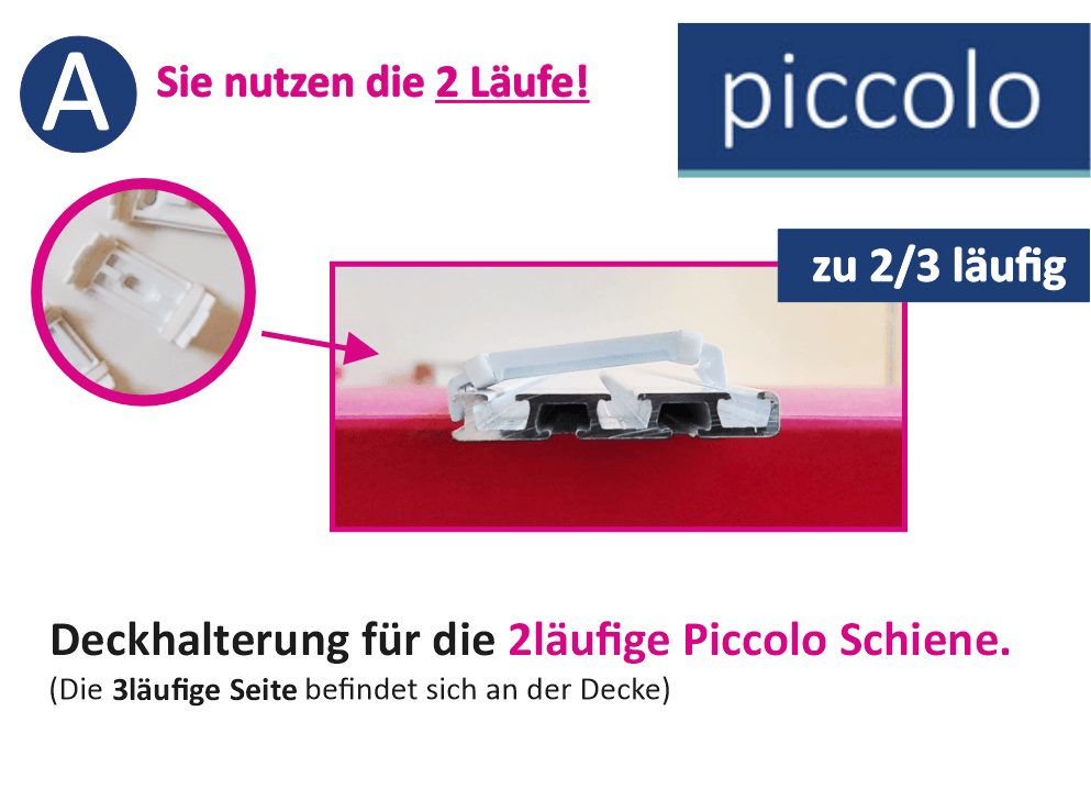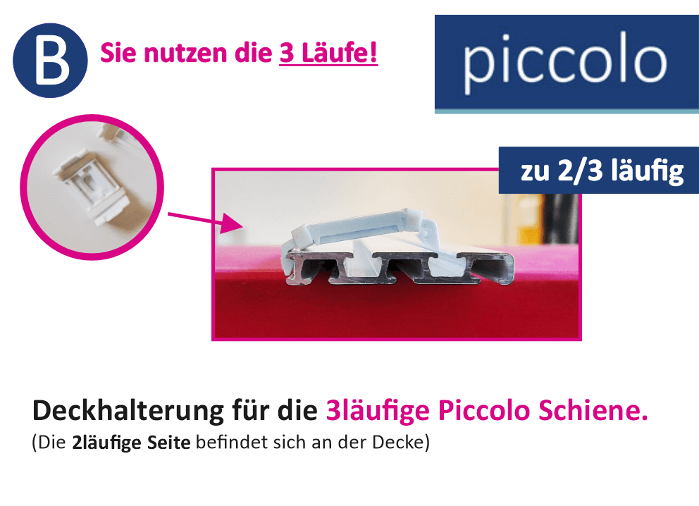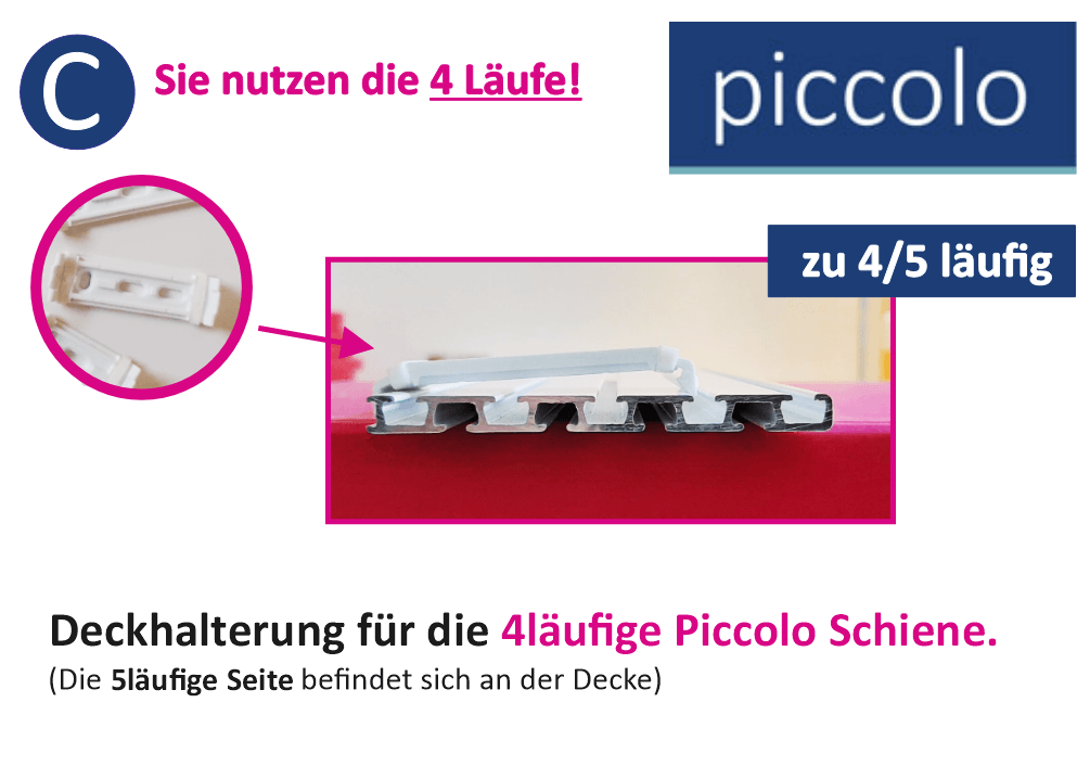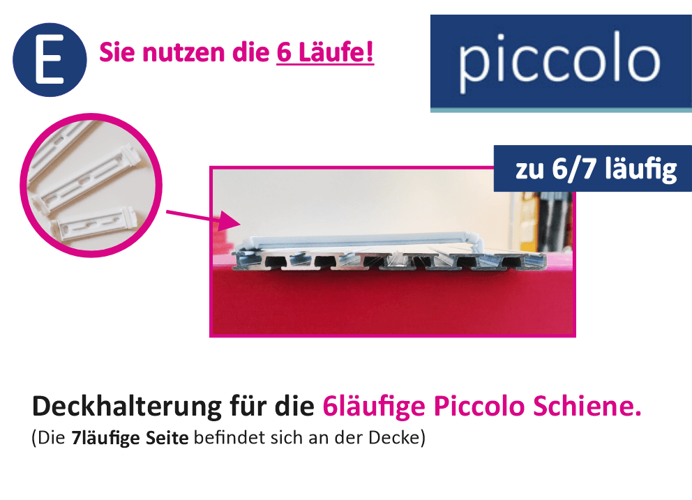 Dafür können Sie bei uns die Deckenhalter für die Piccolo-Schiene nachbestellen!