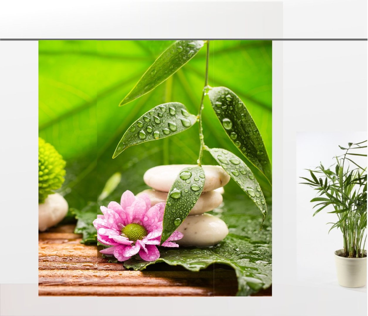 Das Gewebe des Flächenvorhangs besteht zu 100% aus Polyester. Der Druck erfolgt im Sublimationsverfahren und garantiert somit ein Maximum an Langlebigkeit.