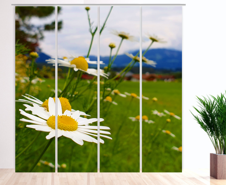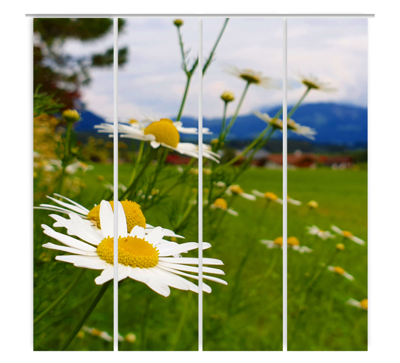 Das Gewebe des Flächenvorhangs besteht zu 100% aus Polyester. Der Druck erfolgt im Sublimationsverfahren und garantiert somit ein Maximum an Langlebigkeit.