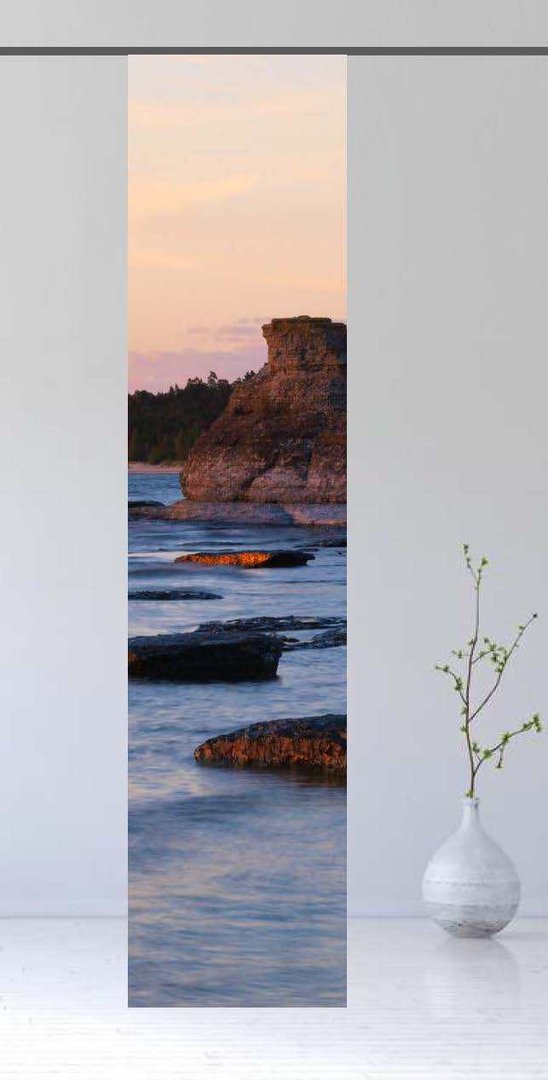 Das Gewebe des Flächenvorhangs besteht zu 100% aus Polyester, die Bedruckung erfolgt im Sublimationsverfahren und garantiert somit ein Maximum an Langlebigkeit.