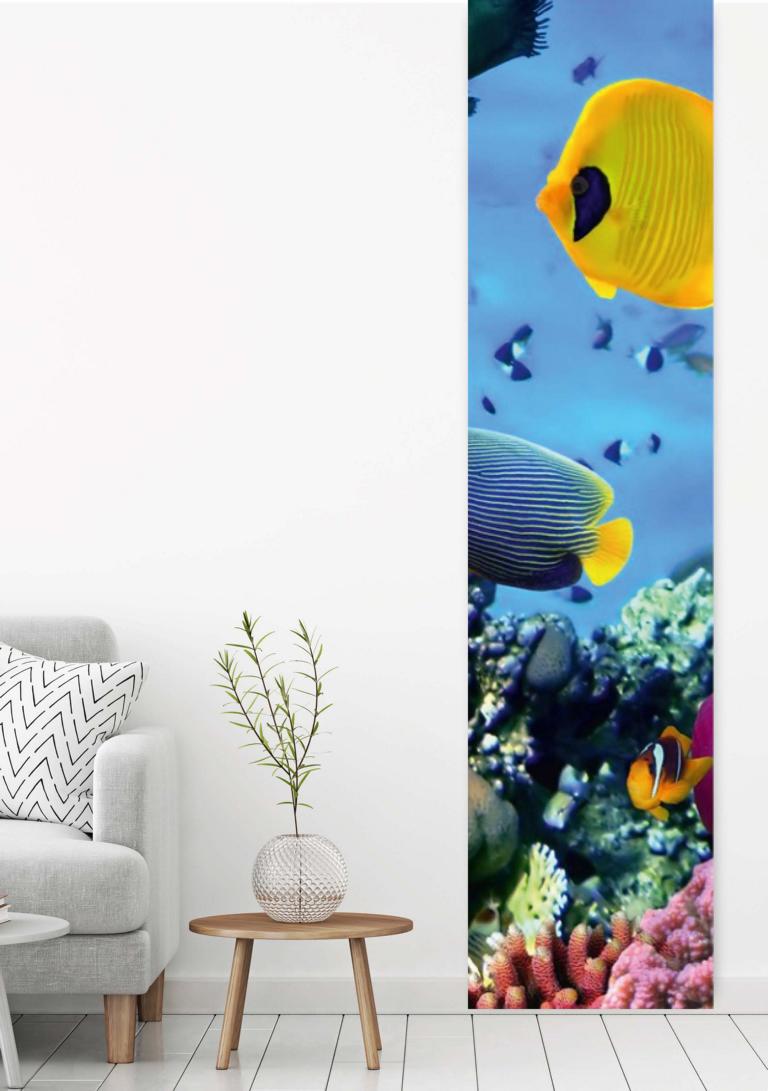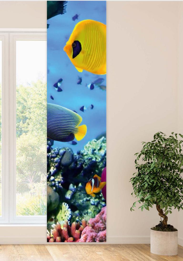 Dieser Flächenvorhang aus eigener Produktion bezaubert durch seine hohe Verarbeitungsqualität und den hochwertigen Druck der im Sublimations-