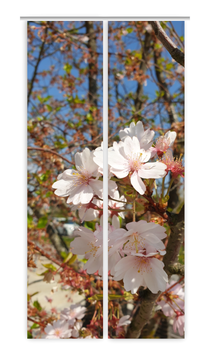 Das Gewebe des Flächenvorhangs besteht zu 100% aus Polyester. Der Druck erfolgt im Sublimationsverfahren und garantiert somit ein Maximum an Langlebigkeit.