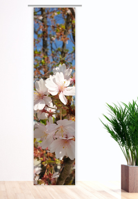 Das Gewebe des Flächenvorhangs besteht zu 100% aus Polyester, die Bedruckung erfolgt im Sublimationsverfahren und garantiert somit ein Maximum an Langlebigkeit.