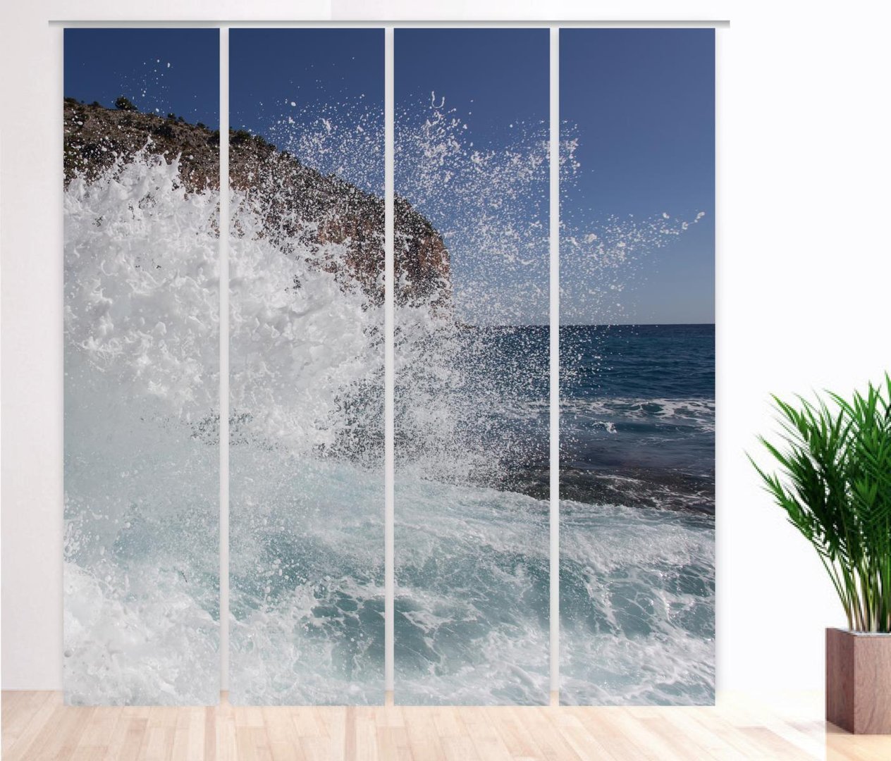 Dieser wunderschöne Flächenvorhang sollte schon bald Teil Ihrer Wohnungseinrichtung sein. Ein erfrischendes Motiv ziert dieses Exemplar aus unserer eigenen Gardinen-Collektion Made in Thüringen. Wellen schlagen an den Felsen der Küste, Gischt spritzt empor und sorgt im übertragenen Sinn für Abkühlung auch in Ihrer Wohnung. Eine einzigartige Atmosphäre entsteht in Ihren 4 Wänden. Holen Sie sich die Natur direkt in Ihren Wohnraum. Die neuen Farben und das neue Motiv werden neuen Schwung, neues Leben in Ihre Wohnung bringen. Das wird sich auch auf Ihr Wohlbefinden darin positiv auswirken. Sie werden Ihre Freude damit haben und viele Betrachter ebenso.