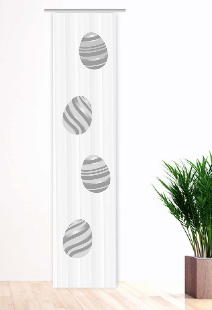 Klasse! Hier finden Sie die passende Fenster-Dekoration für die bevorstehende Osterzeit. Dieser geniale Flächenvorhang aus unserer thüringischen Gardinen-Collektion wird Ihrer Wohnung richtig gut tun und die übergroßen grauen Ostereier werden die Blicke vieler Betrachter auf sich ziehen. Auch Sie werden Ihre Freude daran haben.