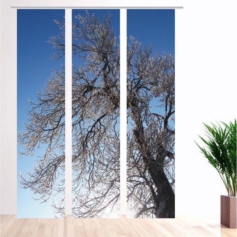 Ein winterliches Motiv prägt diesen Flächenvorhang aus unserer hauseigenen Gardinenkollektion aus Thüringen. Der Baum mit seinen vereisten Zweigen besitzt eine einzigartige Ästhetik und schafft eine bezaubernde Atmosphäre in Ihren Räumlichkeiten, an der Sie sich täglich erfreuen können. Haben Sie Interesse an weiteren Details zu diesem Produkt oder wünschen Sie eine Beratung zu passenden Dekorationsmöglichkeiten?