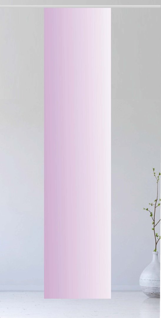Sie sind auf der Suche nach einer neuen Fenster-Dekoration? Dann sind Sie in unserer hauseigenen Gardinen-Collektion absolut richtig. Mit diesem wundervollen Fächenvorhang werden Sie Ihrer Wohnung wieder neuen Glanz verleihen. Der dezente fliederfarbene Farbverlauf wirkt sehr beruhigend und wird perfekt passen.
