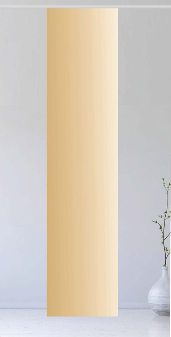 Gönnen Sie sich wieder mal etwas Neues für Ihre Wohnung! Vielleicht wäre dieser wunderbare Flächenvorhang aus unserer thüringisvhen Gardinen-Produktion etwas für Sie. Dieser schlichte Flächenvorhang mit seinem goldenen Farbverlauf wird Ihren 4 Wänden gut tun und sie neu beleben.