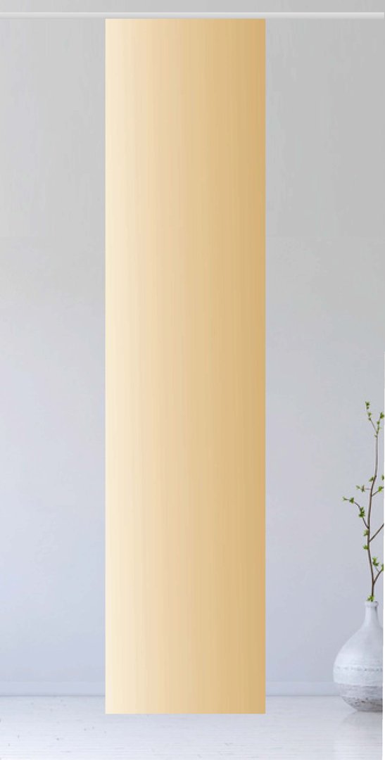 Eine neue Fenster-Dekoration gefällig? Dann greifen Sie bei diesem einmaligen Flächenvorhang aus unserer hauseigenen Gardinen-Collektion doch zu. Der goldene Farbverlauf wirkt sehr dezent und bringt Ruhe in Ihre 4 Wände. Ein Platz zum Wohlfühlen kann entstehen, an dem Sie Ihre Freude haben werden.