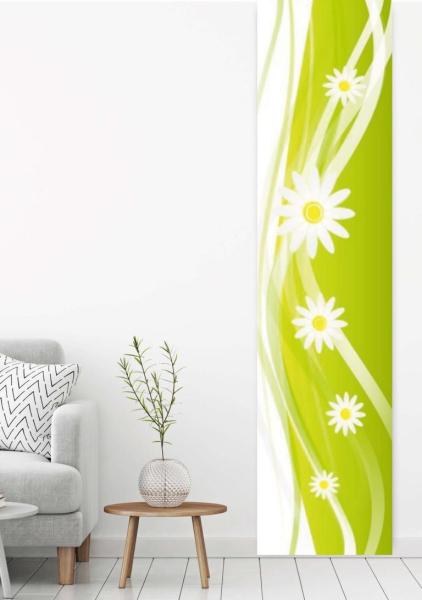 Wunderschöner, digital bedruckter Flächenvorhang, an dessen Oberseite ein Flauschband angebracht ist.