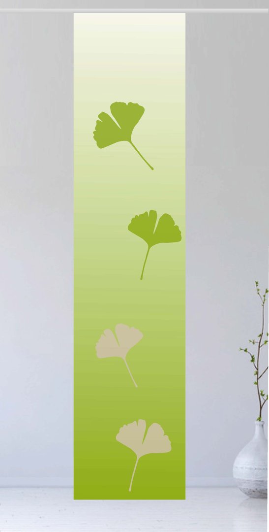 Dieser einzigartige Flächenvorhang aus unserer eigenen Gardinen-Produktion Made in Thüringen könnte schon bald eines der Fenster in Ihrer Wohnung zieren. Das schlicht gehaltene Pflanzenmotiv wirkt durch seinen grünen Farbverlauf sehr anregend und wird auch auf Sie seine Wirkung nicht verfehlen.