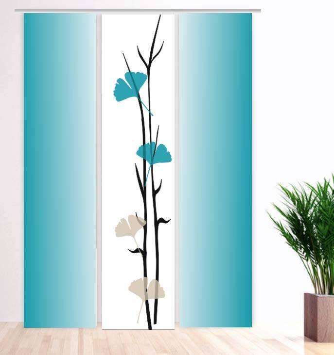Die Flächengardinen sind für verschiedene Fenstergrößen erhältlich. Auf Anfrage können Sie auch individuelle Größen bestellen. Die Vorhänge sind ein echter Hingucker, egal, ob sie als Raumteiler, Wandbild oder Fensterdekoration im Einsatz sind.