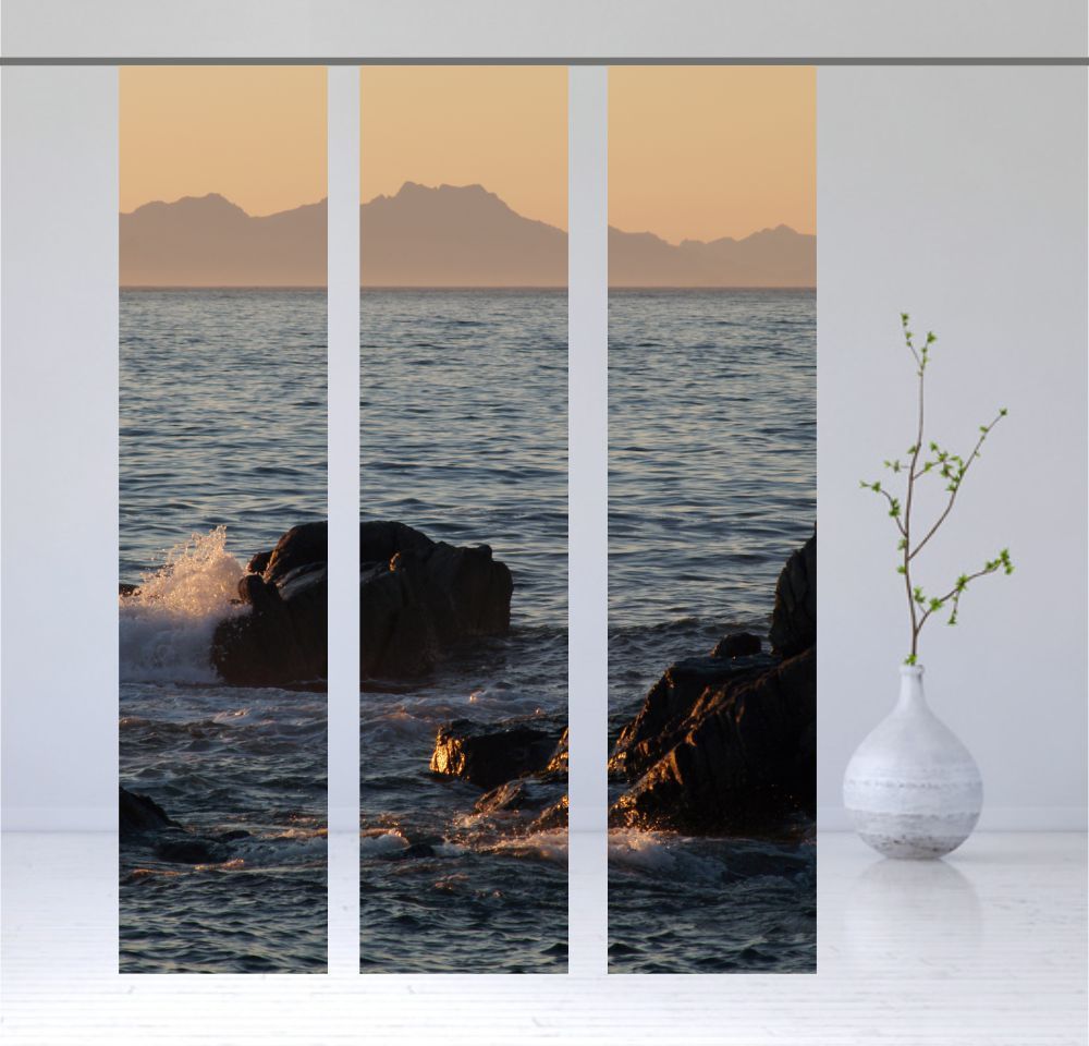 Hier ist ein wunderschöner Flächenvorhang, der Sie in die Natur des Nordens, nach Skandinavien entführt. Das Motiv aus Meer, Bergen und Himmel lädt zum Verweilen ein. Perfekt zum Abschalten und Ausruhen. Lassen Sie die tollen Farben auf sich wirken. Rundherum ein Genuss. Welche weiteren Merkmale oder Vorteile bietet dieser Flächenvorhang, die ihn besonders auszeichnen? Gibt es spezifische Pflegehinweise oder Empfehlungen zur Anbringung, die beachtet werden sollten?