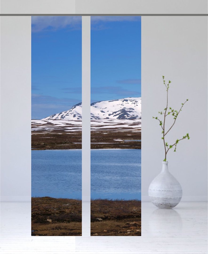 Der Blick über das Wasser auf die schneebedeckten Berge erweckt den Eindruck, mittendrin zu sein. Dieses Motiv bringt die Natur des Nordens mitten in Ihre 4 Wände.