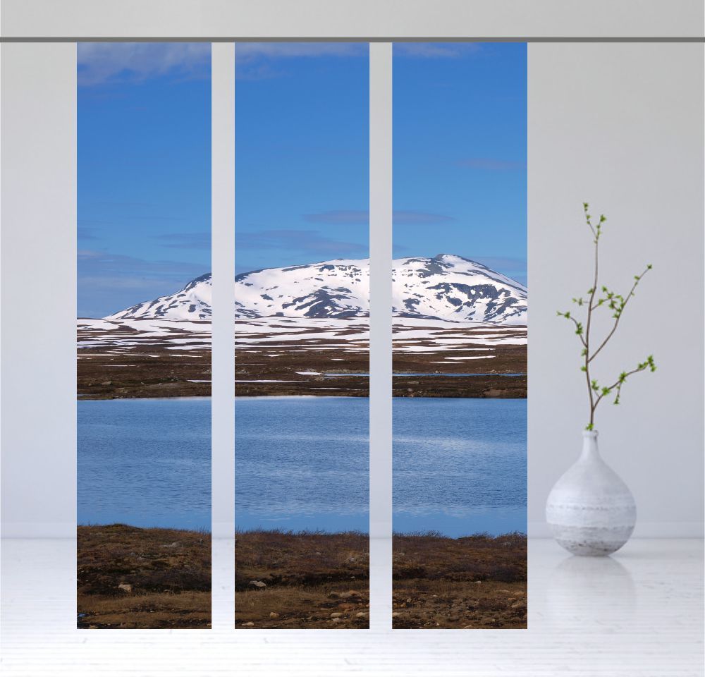 Hier präsentieren wir Ihnen einen äußerst ansprechenden Flächenvorhang, der Sie in die faszinierende Natur Skandinaviens entführt. Das Motiv, welches Himmel, Meer und Berge harmonisch vereint, schafft eine einladende Atmosphäre, die zum Verweilen und Entspannen einlädt. Die sorgfältig ausgewählten Farben entfalten eine beruhigende Wirkung und bieten ein visuelles Vergnügen. Ideal für Momente der Erholung und des Abschaltens. Lassen Sie sich von diesem ästhetischen Genuss inspirieren.