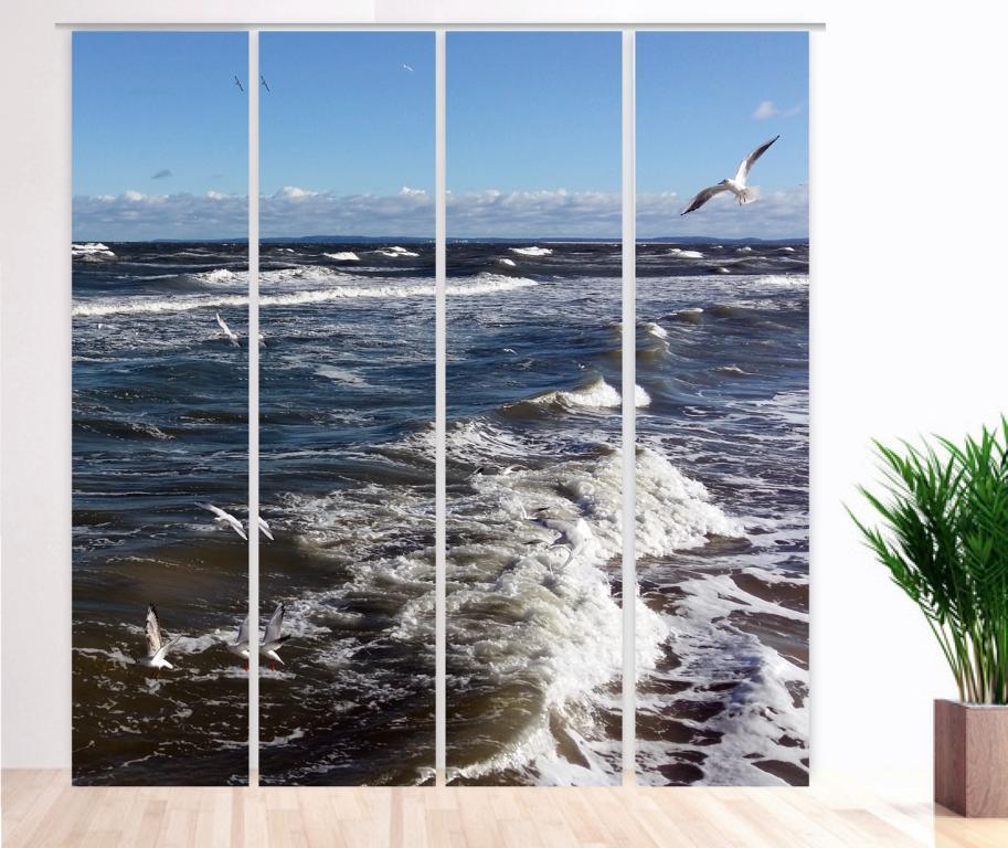 Jetzt wird es aber bestimmt wiedermal Zeit für ein paar Veränderungen in Ihrer Wohnung, oder nicht? Wenn Sie Lust darauf haben, zögern Sie nicht länger. Nutzen Sie die Ideen in unserer thüringischen Gardinen-Collektion. Eine neue Fenster-Dekoration bringt zum Beispiel neue Farben und Motive in den Wohnraum. Das wird ihn nachhaltig verändern. Dieser wunderbare Flächenvorhang wird bestimmt einen geeigneten Platz in Ihrer Wohnung bekommen. Die Natur kommt in den Wohnraum. Eine Möwe lässt sich vom Wind über die Wellen des Meeres treiben. Da kommt Frische und Dynamik in den Wohnraum, die sich bestimmt auf eine tolle Atmosphäre auswirken werden.