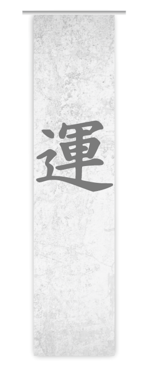 Ein Farb- und Motivwechsel ist für eine Wohnung immer wiedermal notwendig, damit das Wohnklima nicht leidet. Eine neue Fensterdekoration bringt beides schnell in den Wohnraum. Dieser tolle Flächenvorhang besticht durch sein abstraktes Motiv. Ein japanisches Schriftzeichen bestimmt das Motiv. Seine graue Farbe kommt auf dem weißen Untergrund bestens zur Geltung.