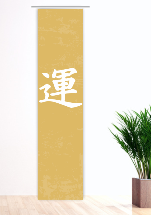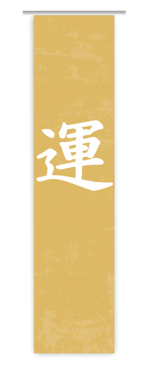 Damit Ihre Wohnung nicht an Attraktivität verliert, sollten Sie hin und wieder etwa Neues hineinbringen. Eine neue Fensterdekoration bringt neue Farben und Motive in den Wohnraum. Dieser tolle Flächenvorhang besticht durch sein abstraktes Motiv. Ein japanisches Schriftzeichen leuchtet in weißer Farbe auf dem goldenen Hintergrund. Perfekt!