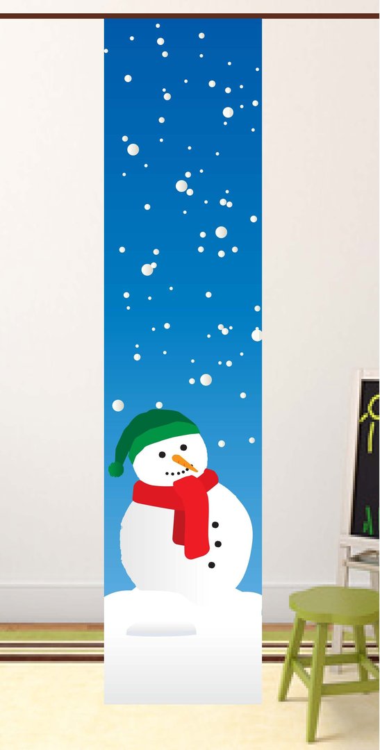 Da der Winter nicht mehr lange auf sich warten lässt, könnte eine winterliche Fenster-Dekoration doch einen gewissen Glanz in Ihre Wohnung bringen. Mit diesem beeindruckenden Flächenvorhang aus unserer eigenen Gardinen-Collektion Made in Thüringen werden nicht nur Ihre Kids große Augen machen, denn das Schneemann-Motiv in seinen leuchtenden Farben wird allen viel Freude bereiten.