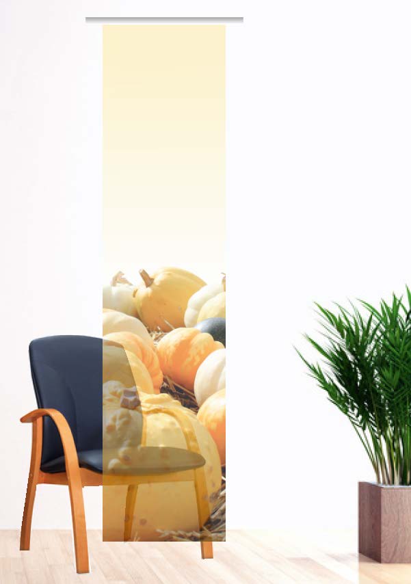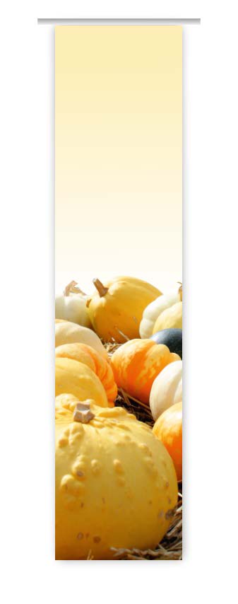 EIn Blickfang besonderer Art wird dieser perfekte Flächenvorhang in Ihrer Wohnung wohl werden. Als neue Fensterdekoration wird er mit seinem gelungenen Herbstmotiv jeden Betrachter überzeugen. Kürbisse in verschiedenen Fromen und Größen bestimmen das Motiv. Die neuen Farben und das Motiv werden Ihren Wohnraum nachhaltig verändern.
