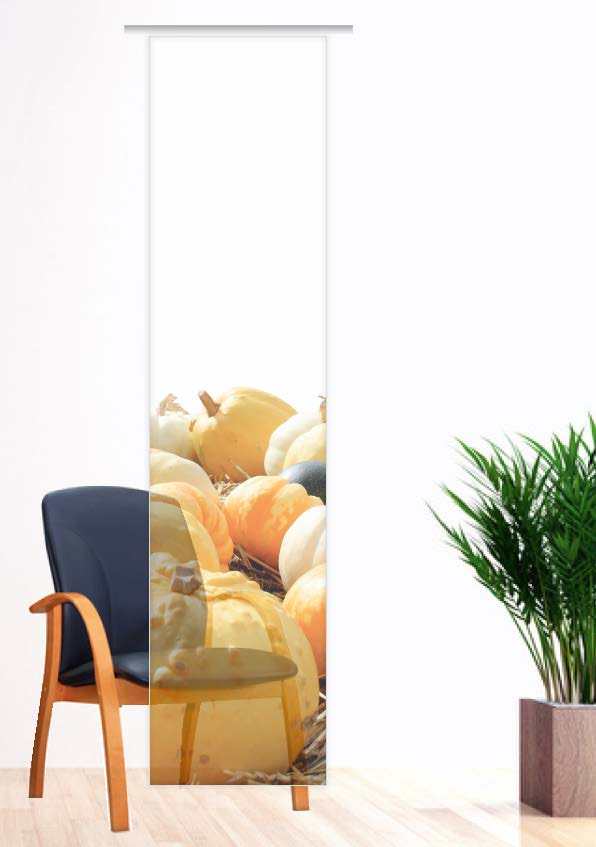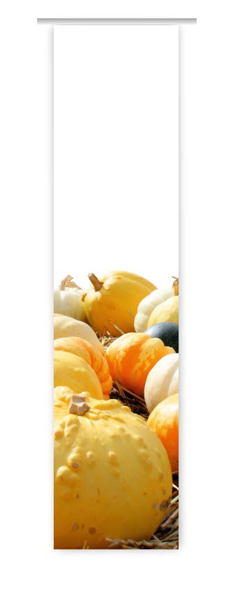 An diesem wundervollen Flächenvorhang werden Sie Ihre Freude haben. Und nicht nur Sie. Jerder Betrachter wird von diesem tollen Motiv beeindruckt sein. Der Herbst mit seinen schönen Farben hält Einzug in Ihren 4 Wänden. Kürbisse in verschiedenen Formen und Größen bestimmen das Bild. Als neue Fensterdekoration ein Muss!