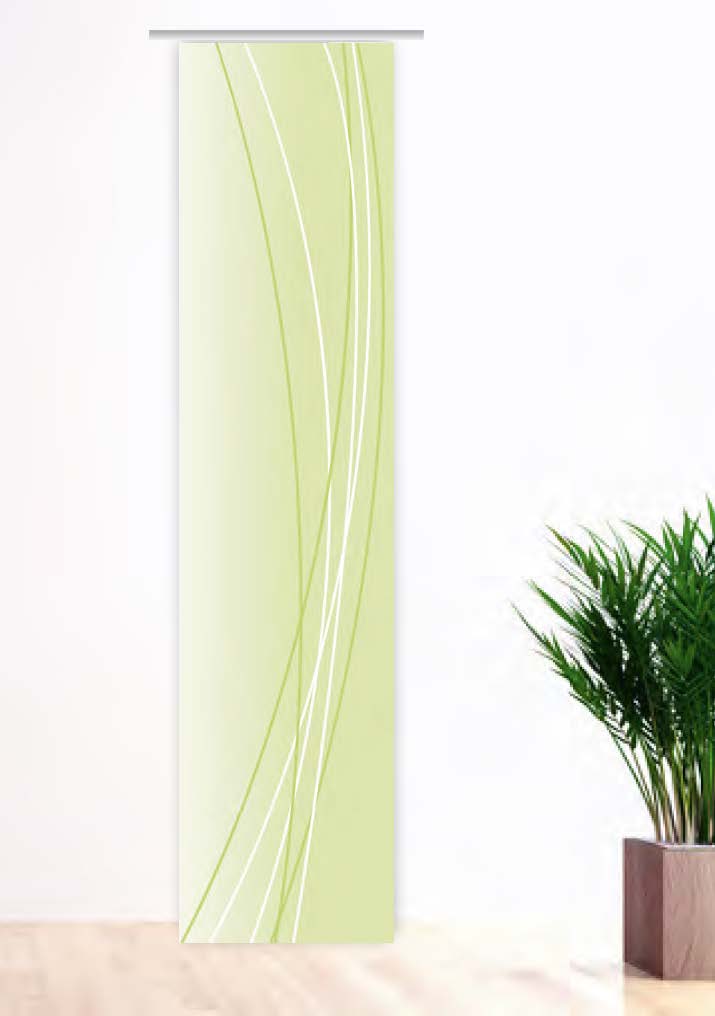 Das Gewebe des Flächenvorhangs besteht zu 100% aus Polyester, die Bedruckung erfolgt im Sublimationsverfahren und garantiert somit ein Maximum an Langlebigkeit.