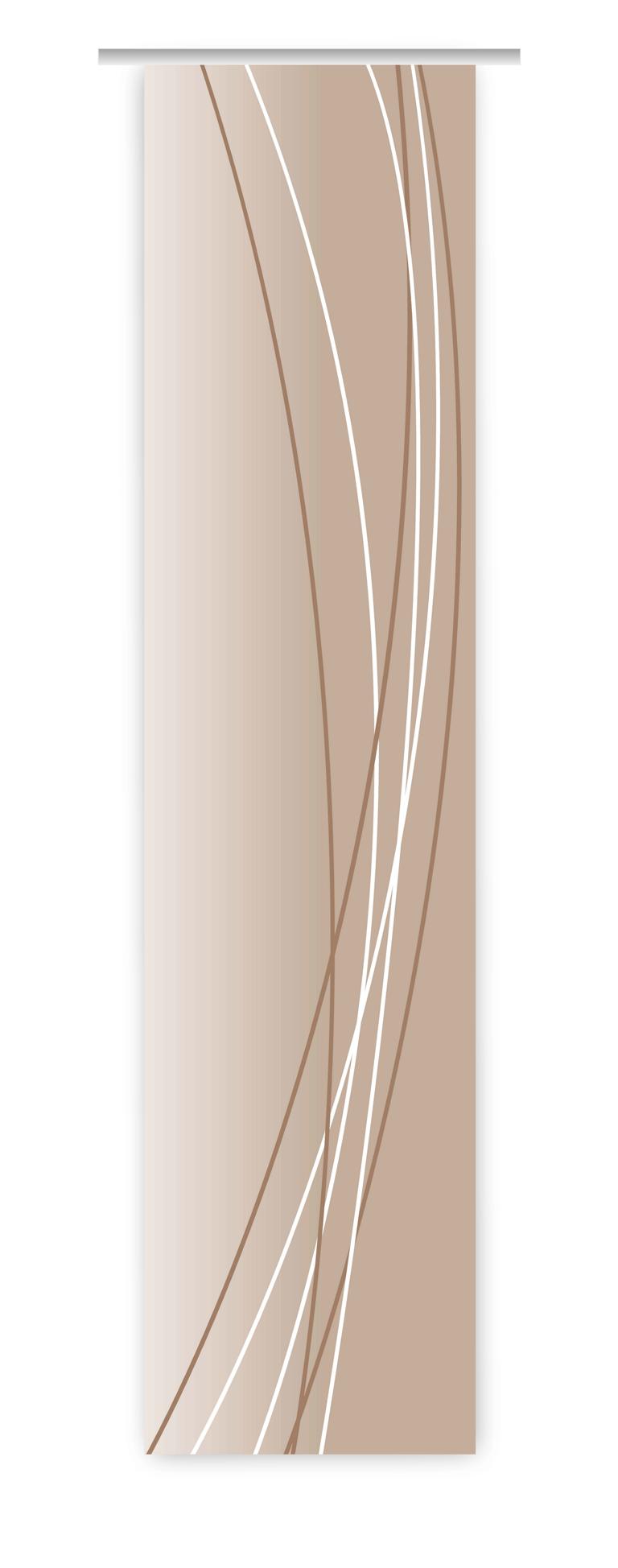 In Ihrer Wohnung fehlt das gewisse Etwas? Dann versuchen Sie doch mit einer neuen Fensterdekoration neuen Schwung hineinzubringen. Neue Farben und Motive sind die Lösung. Sie verändern Ihre Wohnung nachhaltig und sorgen für ein neues Wohngefühl. Dieser Flächenvorhang besticht durch sein schlichtes, abstraktes Motiv. Weiße und braune Linien laufen senkrecht über den braun-weißen Farbverlauf.