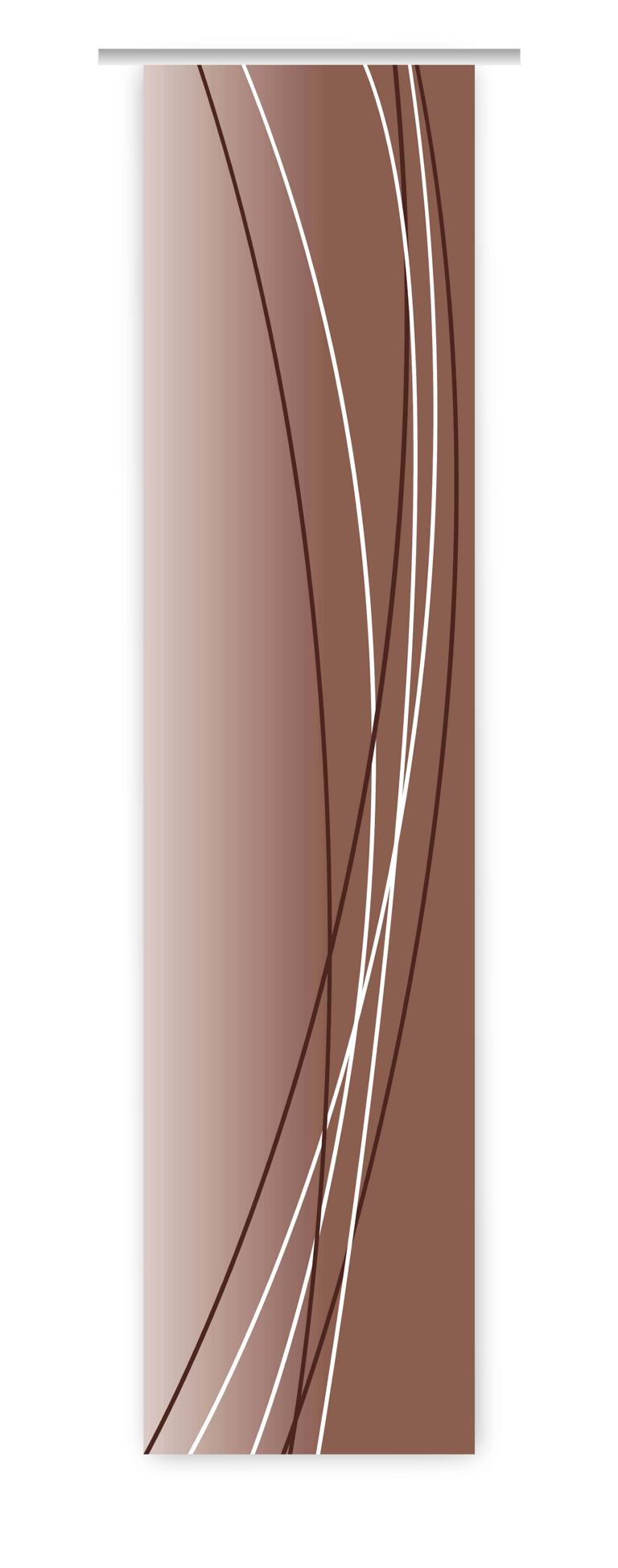 Können Sie sich ein paar Veränderungen in Ihrer Wohnung vorstellen? Dann sollten Sie mal über eine neue Fensterdekoration nachdenken. Mit ihr kommen neue Farben und Motive in den Wohnraum, die diesen nachhaltig verändern werden. Dieser großartige Flächenvorhang besticht durch sein schlichtes, abstraktes Motiv. Auf dem braunen Hintergrund als Farbverlauf laufen senkrecht braune und weiße Linien.