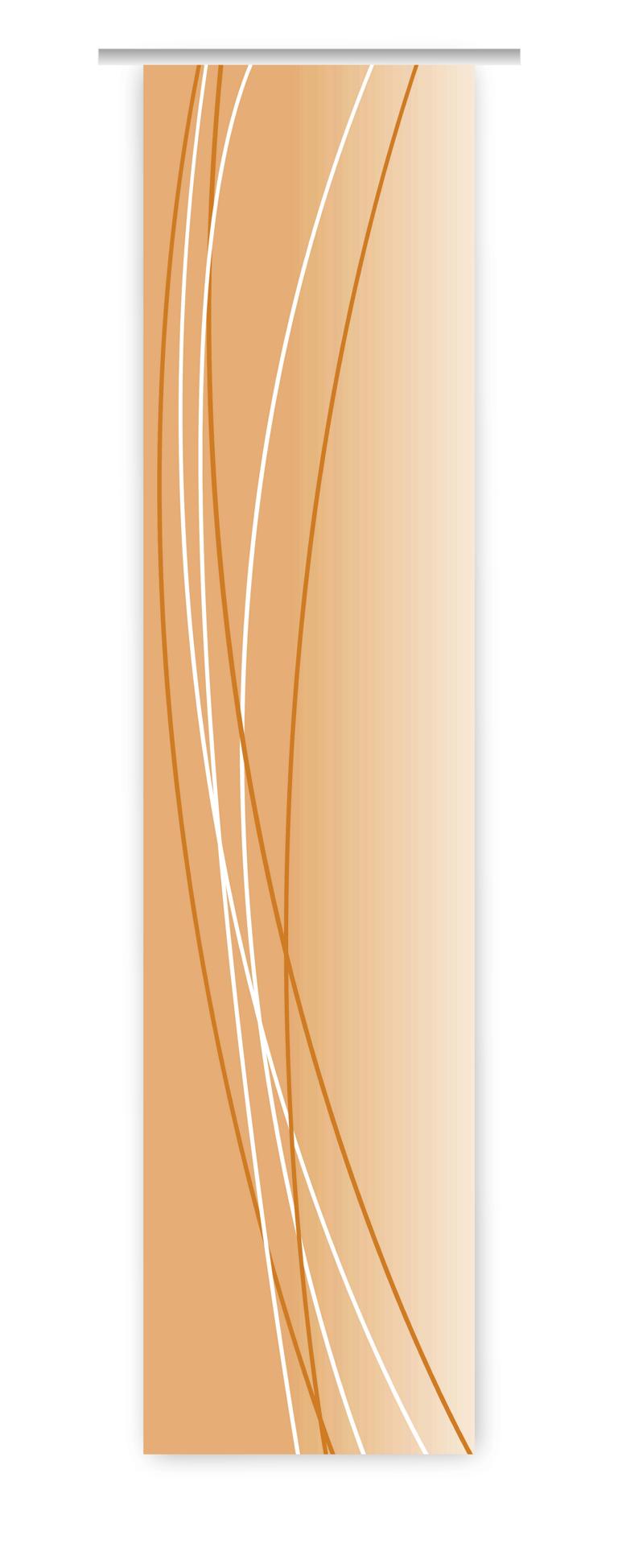 Lieben Sie Veränderungen in Ihrer Wohnung? Dann denken Sie doch mal über eine neue Fensterdekoration nach. Mit ihr kommen neue Farben und Motive in den Wohnraum, die diesen nachhaltig verändern werden. Mit diesem tollen Flächenvorhang wird Ihnen das perfekt gelingen. Sein schlichtes, abstraktes Motiv überzeugt. Weiße und curryfarbene Linien laufen über den curryfarbenen Hintergrund, der als Farbverlauf den Wohnraum zusätzlich belebt.