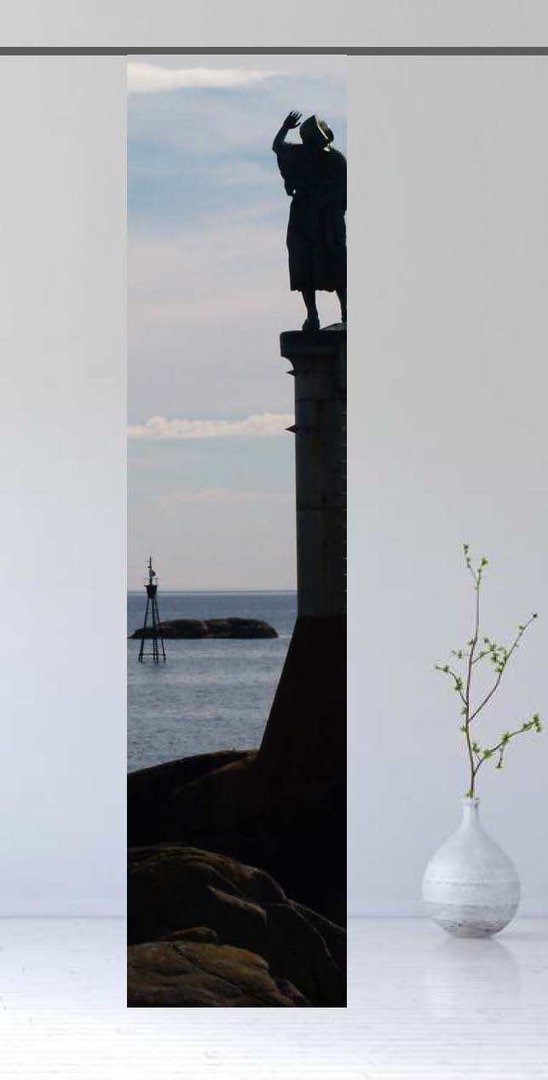Ein Seemann blickt über das Meer in die Ferne und bildet das Motiv dieses Flächenvorhanges, dessen tolle Farben sehr gut zu ihrer Einrichtung passen werden. Lassen Sie sich entführen und finden Sie Zeit zum entspannen und träumen.