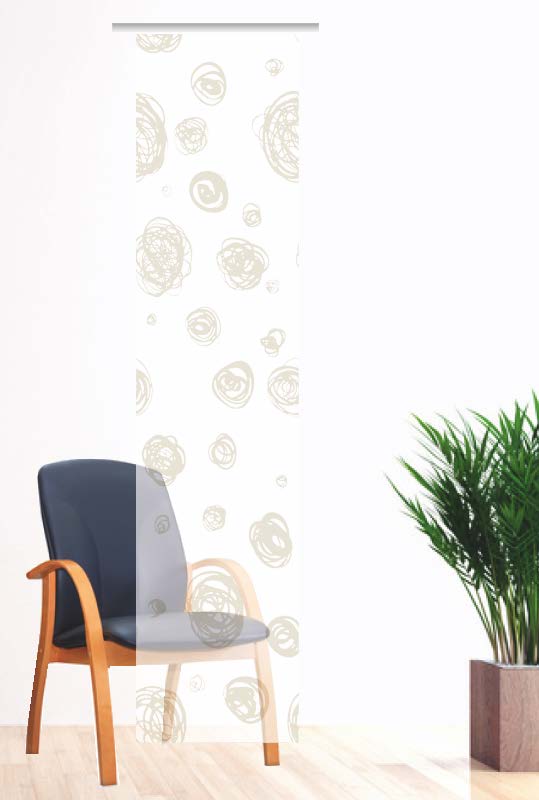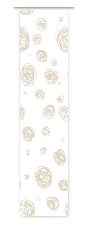 Damit Ihre Wohnung nicht an Wohnqualität verliert, sollten Sie von Zeit zu Zeit etwas darin ändern. Mit einer neuen Fensterdekoration werden Sie das schaffen. Dieser geniale Flächenvorhang bringt mit seinem modernen Motiv neuen Schwung in Ihre 4 Wände. Tonfarbene, schneeballförmige Elemente tummeln sich auf dem weißen Untergrund.