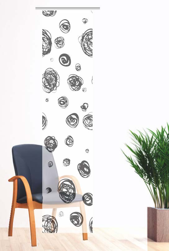 Eine neue Fensterdekoration könnte neue Farben und und Motive in Ihren Wohnraum bringen und diesen nachhaltig verändern. Das wird das Wohnklima verbessern. Dieser mustergültige Flächenvorhang besticht durch sein moderne Motiv. Dunkle, schneeballförmige Elemente tummeln sich auf dem weißen Untergrund.