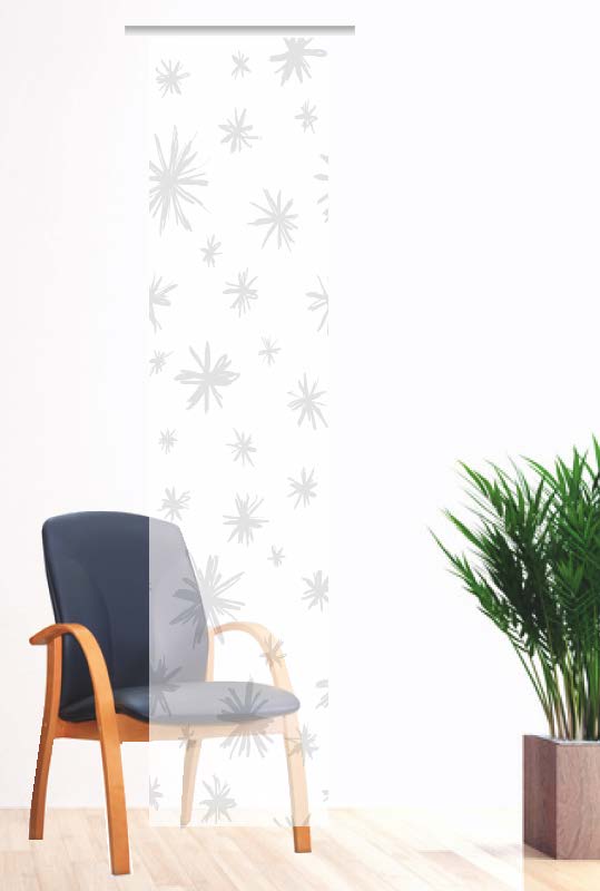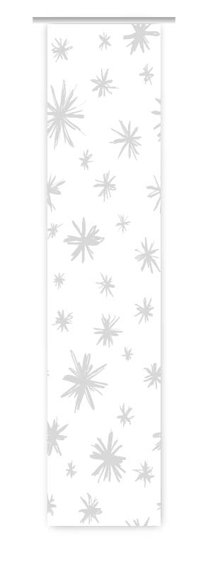 Fensterdekorationen sind in vielen Fällen das Gesicht einer Wohnung. Verändern Sie hier etwas und Sie werden es nicht bereuen. Ihre Wohnung erhält einen neuen Charakter. Dieser außergewöhnliche Flächenvorhang wird mit seinem modernen Motiv überzeugen. Graue, sternförmige Elemente tummeln sich auf dem weißen Untergrund.