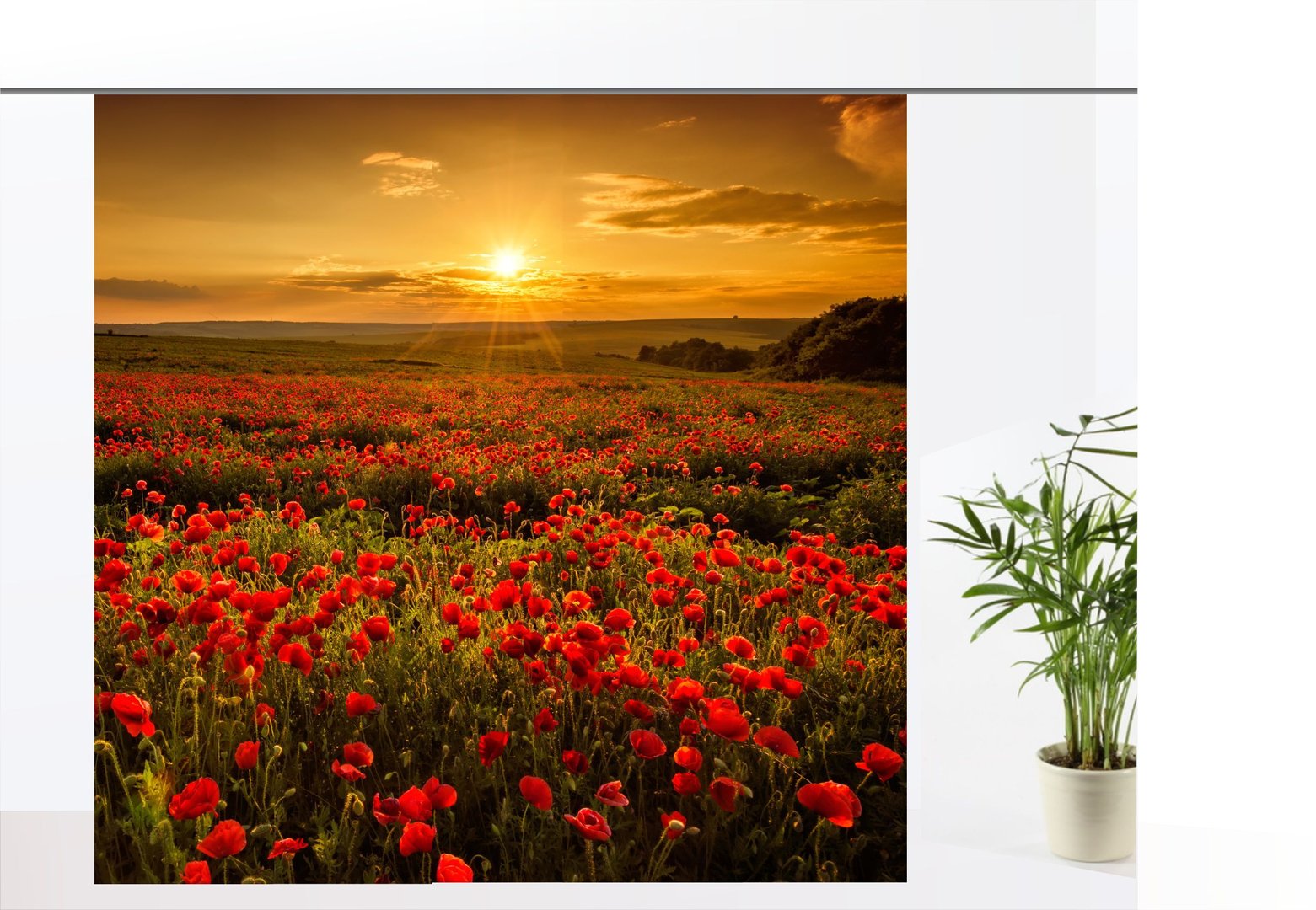 Das Gewebe des Flächenvorhangs besteht zu 100% aus Polyester. Der Druck erfolgt im Sublimationsverfahren und garantiert somit ein Maximum an Langlebigkeit.