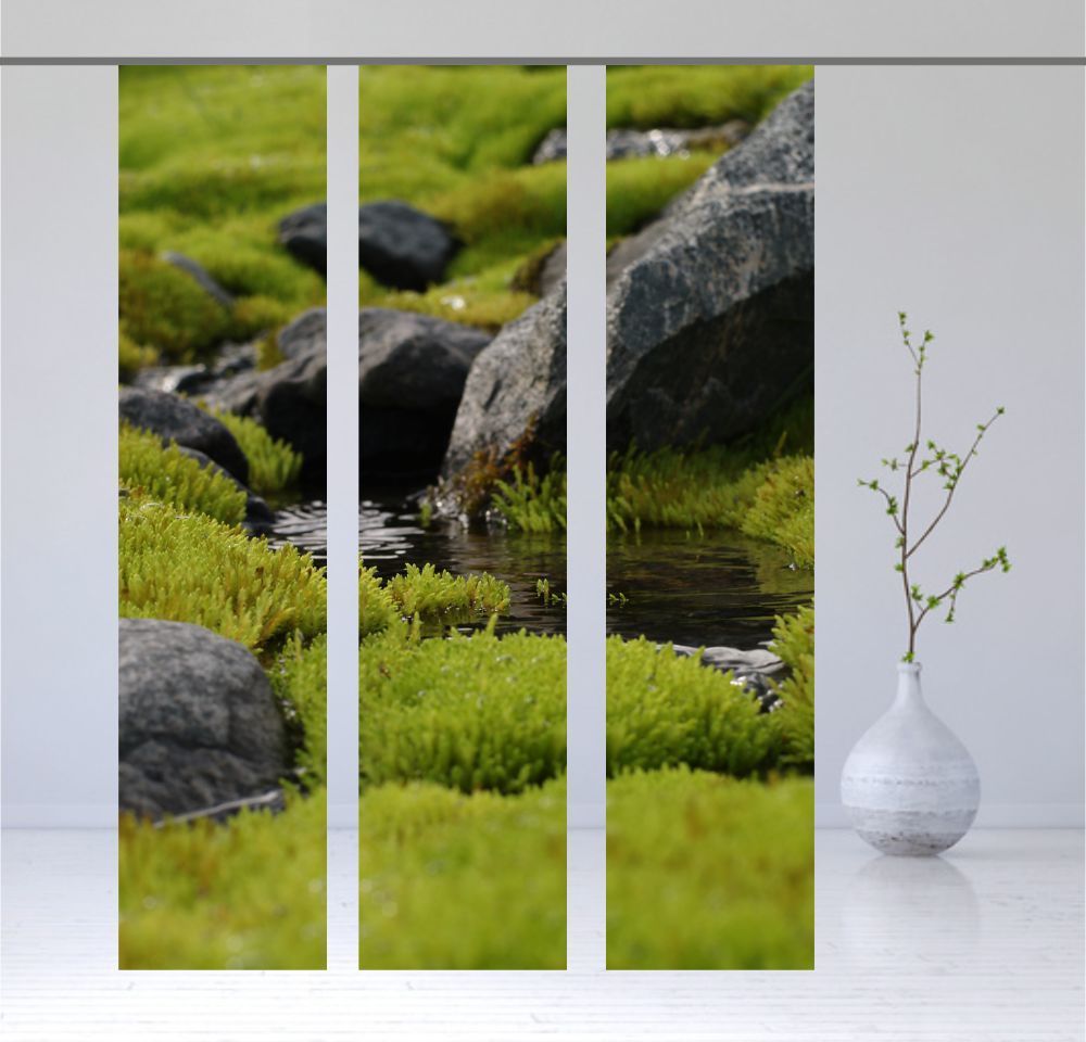 Ist dieser Flächenvorhang nicht einfach perfekt? Er entführt Sie nach Skandinavien, in die unberührte Natur des Nordens. Das kunstvolle Motiv aus Wasser, Moos und Felsen lädt zum Verweilen und Träumen ein. Es ist ideal, um abzuschalten und neue Energie zu tanken. Lassen Sie die harmonischen Farben auf sich wirken und genießen Sie die beruhigende Atmosphäre, die dieser Flächenvorhang in Ihren Raum bringt. Wäre es möglich, mehr über die Materialien und Pflegehinweise zu erfahren? Gibt es unterschiedliche Größenoptionen, die für verschiedene Raumkonzepte geeignet sind?
