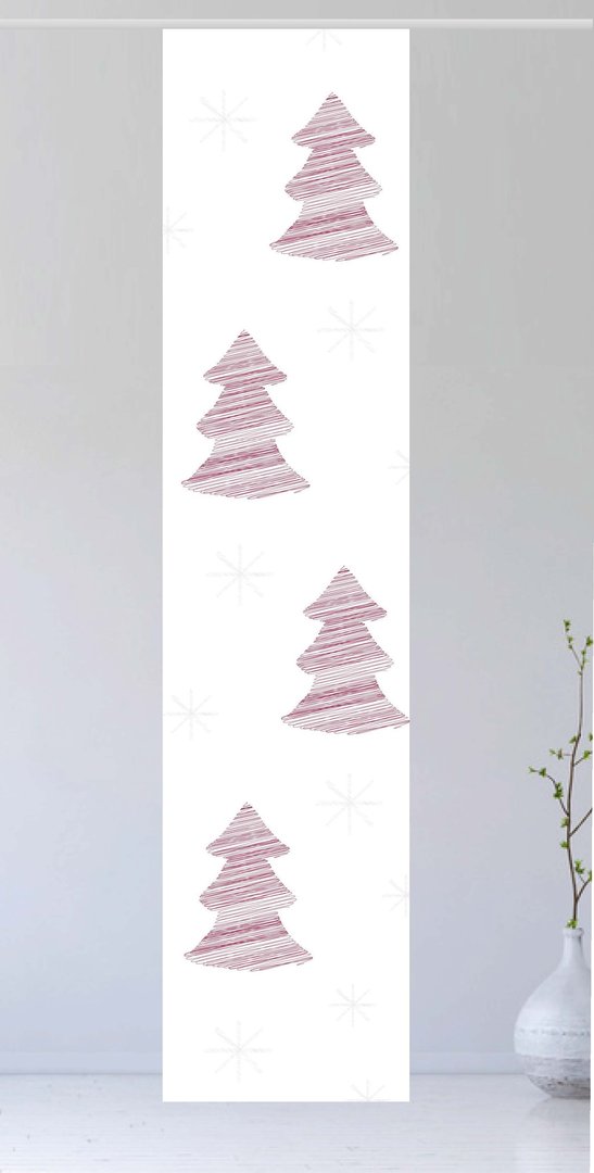 Verbreiten Sie doch etwas winterliche oder gar weihnachtliche Atmosphäre in Ihrer Wohnung! Mit diesem außergewöhnlichen Flächenvorhang aus unserer eigenen Gardinen-Collketion Made in Thüringen wird Ihnen das perfekt gelingen. Die dezent gehaltenen Weinhnachtsmotive heben sich in Ihrer violetten Farbgebung perfekt von dem hellen Hintergrund ab. Ein echter Hingucker.
