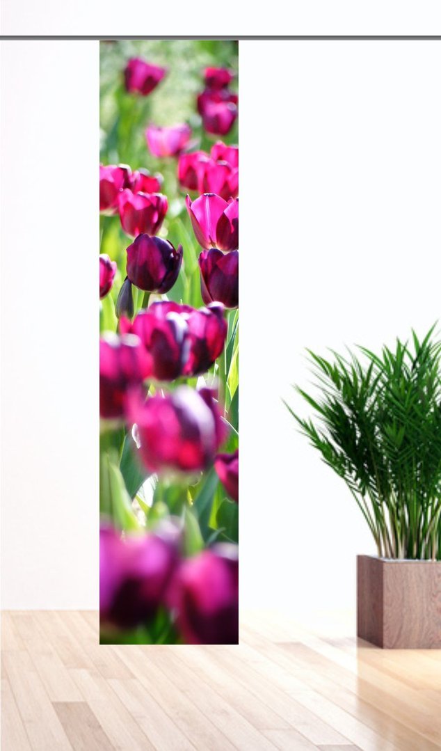 Dieser Schiebevorhang bringt den ewigen Frühling in Ihr Heim. Dieses Blütenmeer an lila Tulpen kann