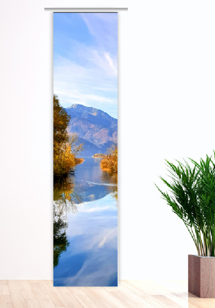 Denken Sie über ein paar Veränderungen in Ihrer Wohnung nach? Dann sind Sie hier in unserer thüringischen Gardinen-Collektion mit Sicherheit absolut richtig. Hier finden Sie tolle Ideen rund um das Fenster. Mit einer neuen Fenster-Dekoration holen Sie sich neue Farben und Motive in den Wohnraum. Das schafft eine neue Atmosphäre und sorgt wieder für ein tolles Wohngefühl. Dieser Flächenvorhang wird bestimmt ein neues Highlight in Ihrer Wohnung werden. Sein gelungenes Naturmotiv besticht ohne Frage. Ein See liegt im Zentrum des Bildes, umgeben von den hohen Bergen der Alpen. Herbststimmung macht sich breit. Die Natur kommt in Ihre Wohnung. Das sollte Sie doch überzeugen.