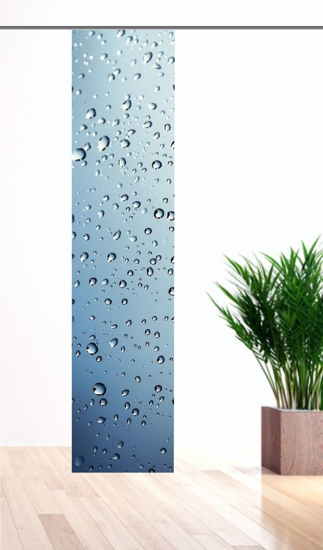 Wasser ist Leben und ebenso lebendig und vielseitig wirkt der moderne, blickdickte Flächenvorhang Stilla. Der edle Vorhang ist die ideale Wahl für Ihr Badezimmer, kann aber auch im Schlafzimmer für eine gelungene Überraschung sorgen. Durch den exzellenten Digitalprint wirken die Wassertropfen aus dem aus Polyester bestehenden Stoff besonders schick. Die Grundfarbe wird von unten nach oben immer heller. Für die Befestigung am Paneelwagen befindet sich oben ein Flauschband. Sie können den Vorhang bei uns direkt mit dem passenden Paneelwagen bestellen und profitieren so von einem praktischen Komplettset.