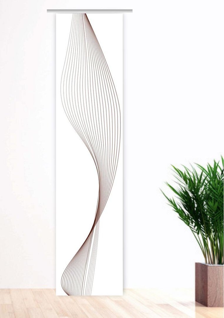 Das Gewebe des Flächenvorhangs besteht zu 100% aus Polyester, die Bedruckung erfolgt im Sublimationsverfahren und garantiert somit ein Maximum an Langlebigkeit.