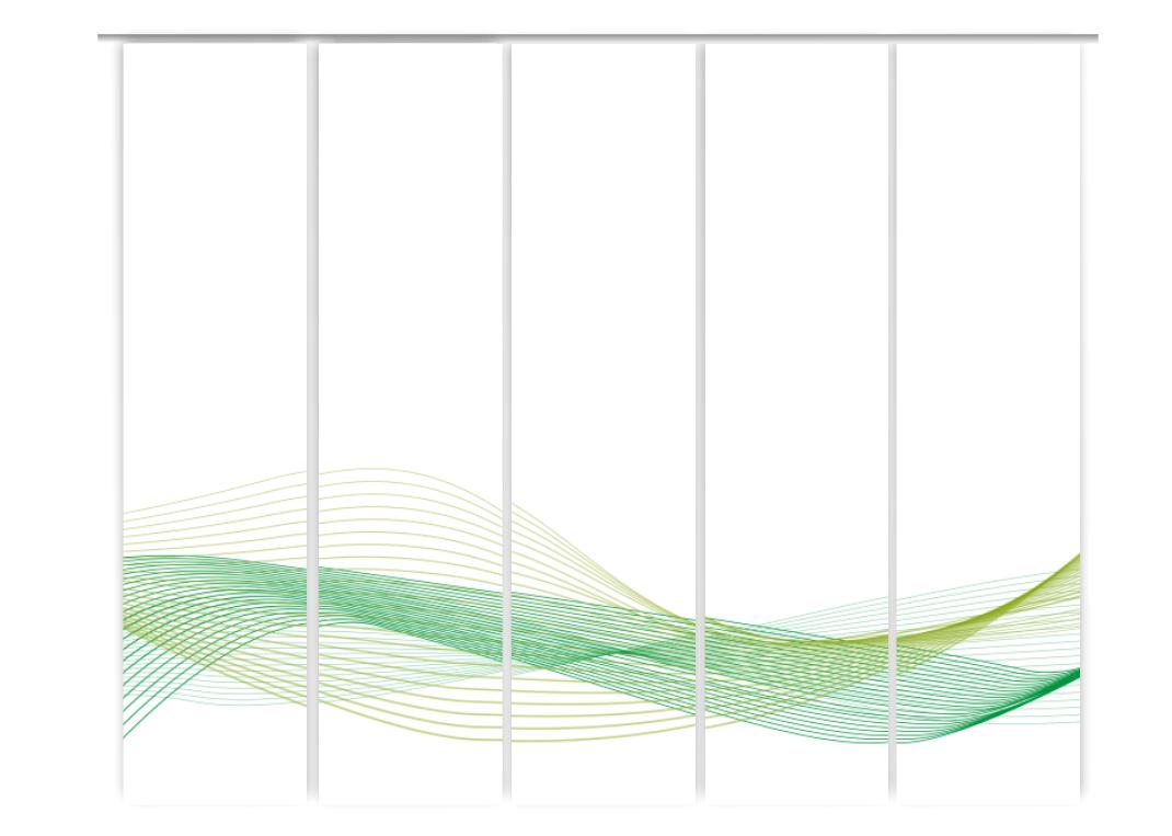 Das Gewebe des Flächenvorhangs besteht zu 100% aus Polyester. Der Druck erfolgt im Sublimationsverfahren und garantiert somit ein Maximum an Langlebigkeit.