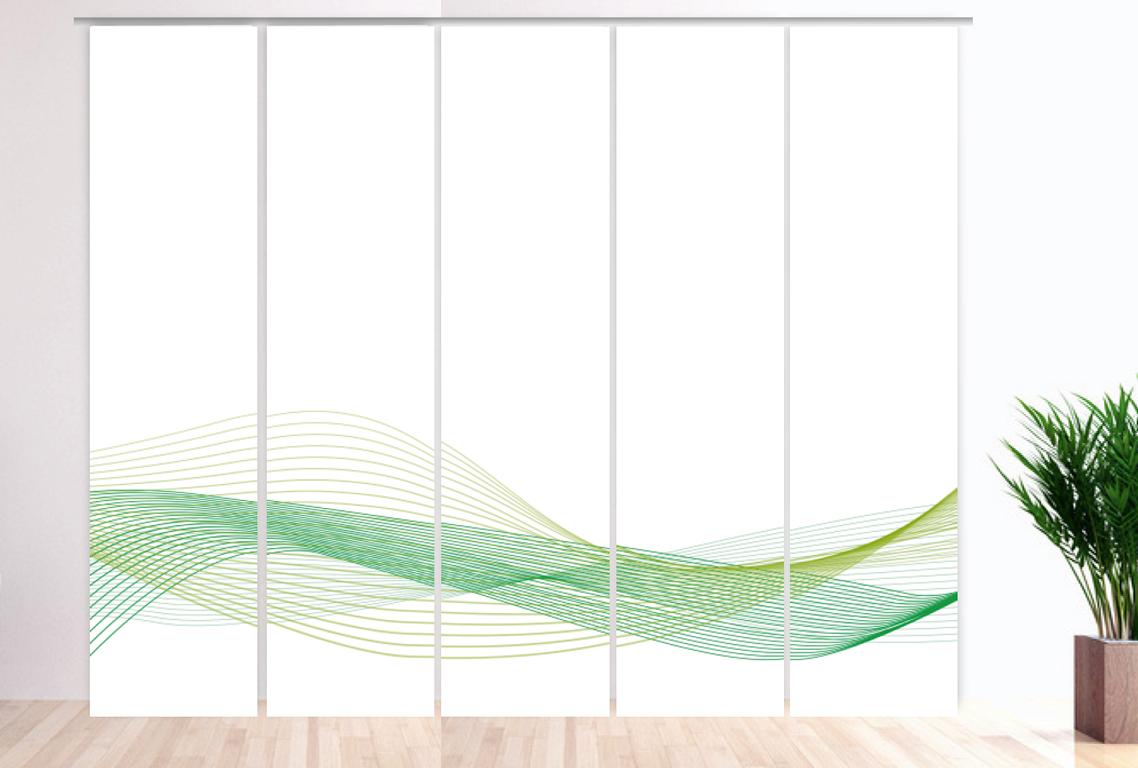 Jede Wohnung braucht von Zeit zu Zeit ein paar Veränderungen, damit sie attraktiv und wohnlich bleibt. Bringen Sie mit einer neuen Fensterdekoration neue Farben und Motive in den Wohnraum, das wird neuen Schwung in die Wohnung bringen. Dieser Flächenvorhang überzeugt mit seinem abstrakten Linienmotiv. Ein Netz aus grünfarbenen Wellenlinien durchläuft den weißen Untergrund.
