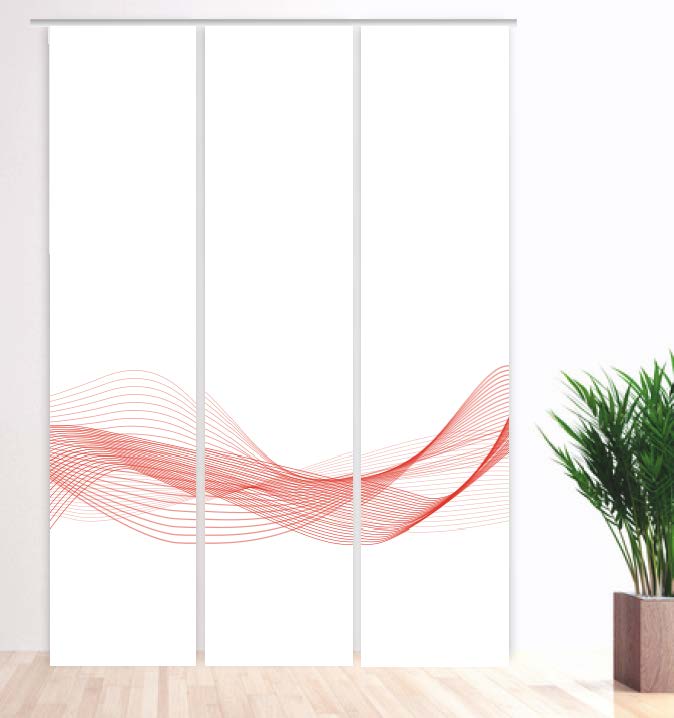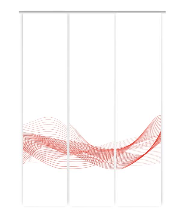 Fensterdekorationen spielen eine entscheidende Rolle bei der Gestaltung des Erscheinungsbildes einer Wohnung. Eine Veränderung in diesem Bereich kann das gesamte Ambiente Ihrer Wohnräume nachhaltig beeinflussen. Mit diesem speziellen Flächenvorhang können Sie eine eindrucksvolle Wirkung erzielen. Das künstlerische Motiv des Vorhangs überzeugt durch seine Gestaltung: Wellenförmige rote Linien durchziehen den weißen Hintergrund und verleihen dem Raum eine dynamische und lebendige Atmosphäre. Diese Gestaltung sollte sich harmonisch in Ihre Wohnumgebung einfügen. Könnten Sie sich vorstellen, wie dieser Vorhang das Ambiente Ihrer Wohnung positiv beeinflussen könnte?